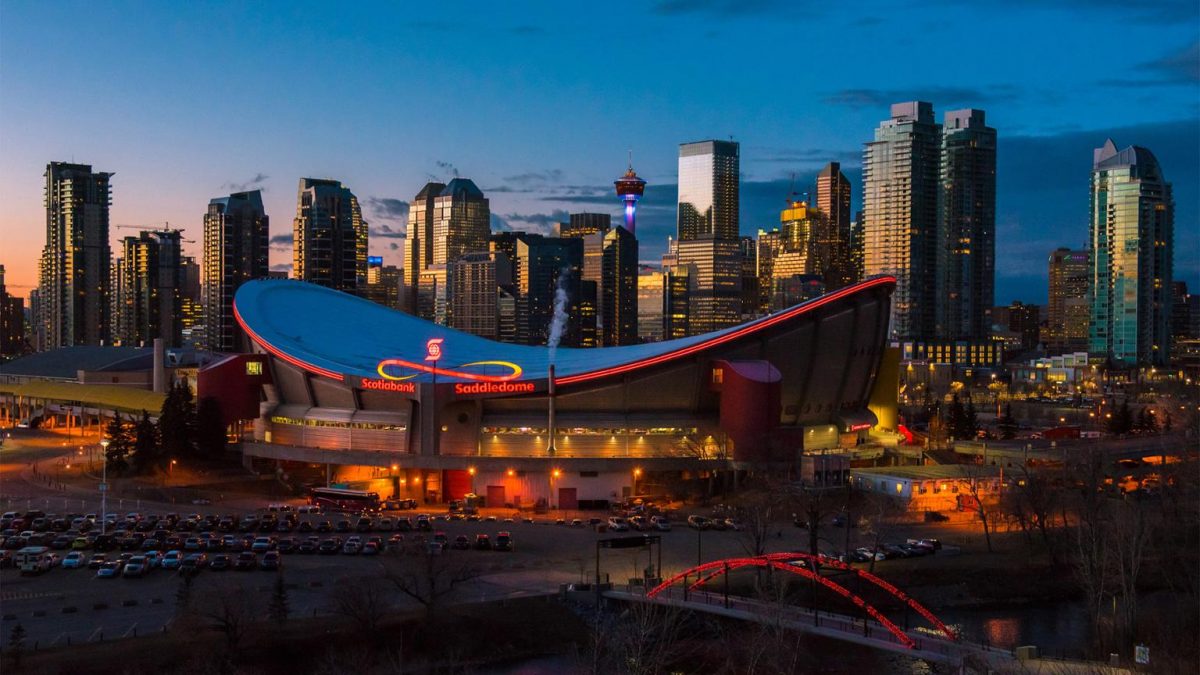 Скоушабэнк-Сэдлоум имеет непривычную для стадиона форму, которая напоминает седло. Почему именно седло? Дело в том, что город Калгари, где находится спортивная арена, когда-то проводил всемирно известные ежегодные родео (состязание с укрощением дикой лошади). Архитектором стадиона выступило бюро «Graham McCourt Architects».