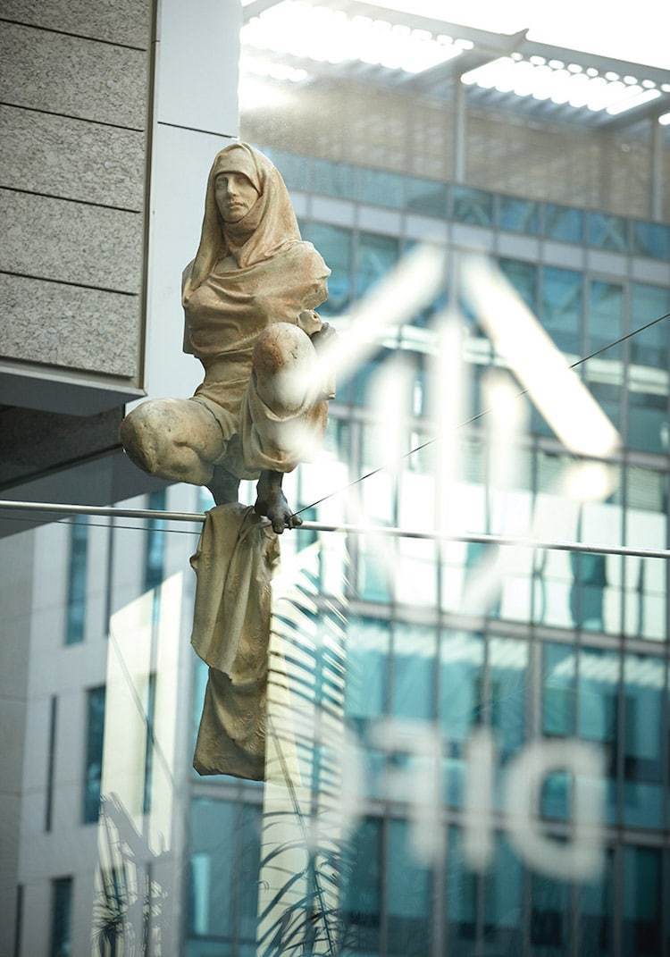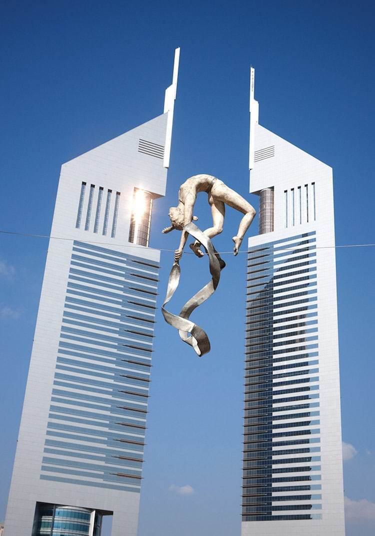 Одним из таких примеров являются творения польского скульптора Ежи Кендзёра, который знает, как справиться с гравитацией. Он размещает свои парящие в воздухе статуи по всему миру — от Кракова до Майами и Абу-Даби.