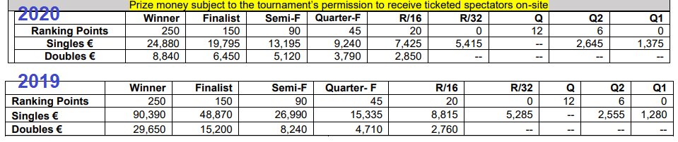 Чемпион турнира получит €24,880, тогда как в минувшем сезоне награда триумфатора соревнований составляла €90,390.