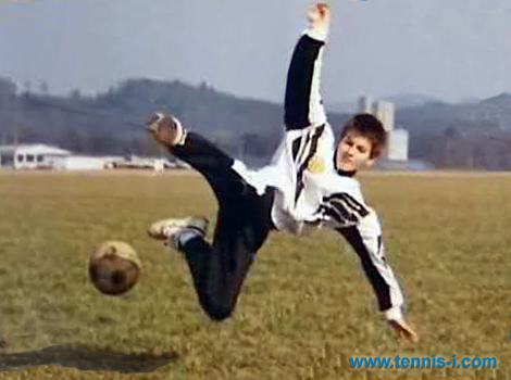 12-летний Федерер решает прекратить тренировки по футболу и сконцентрироваться исключительно на теннисе, даже в ущерб занятиям в школе, которые он посещал без особого желания (прим.авт.– Любовь к футболу у него осталась в сердце и он по-прежнему фанат этой игры). Родители также были за теннис. Особенно мама хотела видеть сына именно теннисистом.. Скорее всего, их мнение помогло принять окончательное решение. «Лично я убеждён, что если бы он выбрал футбол, то вошёл бы в сборную Швейцарии«, – вспоминал Сеппли Качовски. – «Я видел его лишь дважды, но он в этих двух матчах забил три гола. В одном из них он получил мяч на своей половине, вёл его шестьдесят метров и забил гол. У него был талант!«